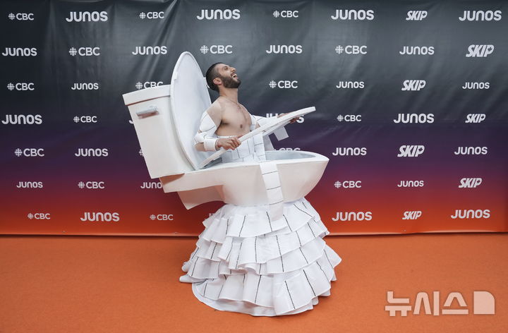 [밴쿠버=AP/뉴시스] 캐나다 래퍼이자 가수 베이비노머니(bbno$)가 30일(현지 시간) 캐나다 브리티시컬럼비아주 밴쿠버에서 열린 '2025 주노 어워드'(캐나다 대표 음악상)에 도착해 포즈를 취하고 있다. 2025.03.31.