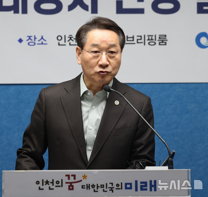 [인천=뉴시스] 전진환 기자 = 유정복 인천시장이 31일 오전 인천 남동구 인천시청에서 영종미단시티 국제학교 우선협상대상자 선정 결과를 발표하고 있다. 인천시는 국제학교 우선협상대상자로 영국의 기숙학교 '위컴 애비'(Wycombe Abbey)를 선정했다고 밝혔다. 2025.03.31. [email protected]