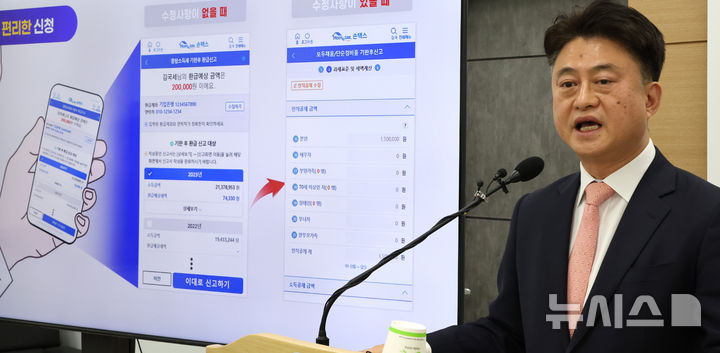 [세종=뉴시스] 강종민 기자 = 이성진 국세청 정보화관리관이 31일 세종시 정부세종2청사에서 최대 5년 치 환급금액을 클릭 한 번으로 신청할 수 있는 종합소득세 환급 서비스 '원클릭'을 개통했다고 밝히고 있다. 2025.03.31. [email protected]