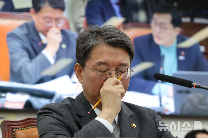 [서울=뉴시스] 권창회 기자 = 김정원 헌법재판소 사무처장이 31일 서울 여의도 국회에서 열린 법제사법위원회 전체회의에서 생각에 잠겨 있다. 2025.03.31. [email protected]