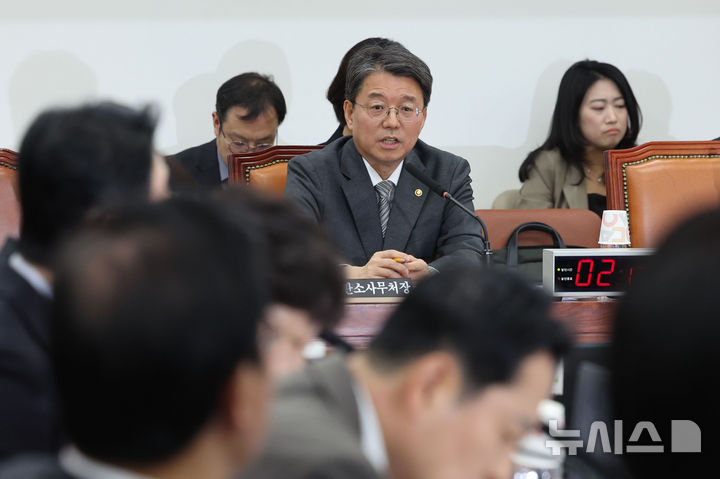 [서울=뉴시스] 권창회 기자 = 김정원 헌법재판소 사무처장이 31일 서울 여의도 국회에서 열린 법제사법위원회 전체회의에서 의원질의에 답하고 있다. 2025.03.31. [email protected]
