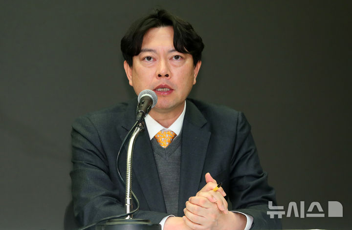 [서울=뉴시스] 김혜진 기자 = 배우 김수현 법률대리인 김종복 변호사가 31일 오후 서울 마포구 스탠포드호텔에서 열린 기자회견에서 입장을 밝히고 있다. 2025.03.31. [email protected]