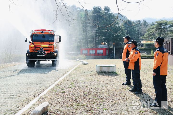 [양평=뉴시스] 1일 김재병 경기소방재난본부장이 봄철 산불 취약 시기를 대비하고 산불 예방 및 대응을 위해 양평군 용문산을 찾아 현장 안전지도를 실시하고 있다. (사진=경기도소방재난본부 제공) 2025.4.1. [email protected]