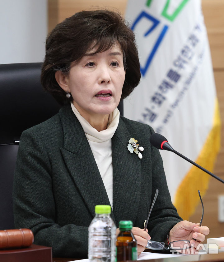 [서울=뉴시스] 추상철 기자 = 박선영 진실화해위원장이 1일 오후 서울 중구 진실·화해를위한과거사정리위원회에서 제103차 위원회를 주재하고 있다. 2025.04.01. [email protected]