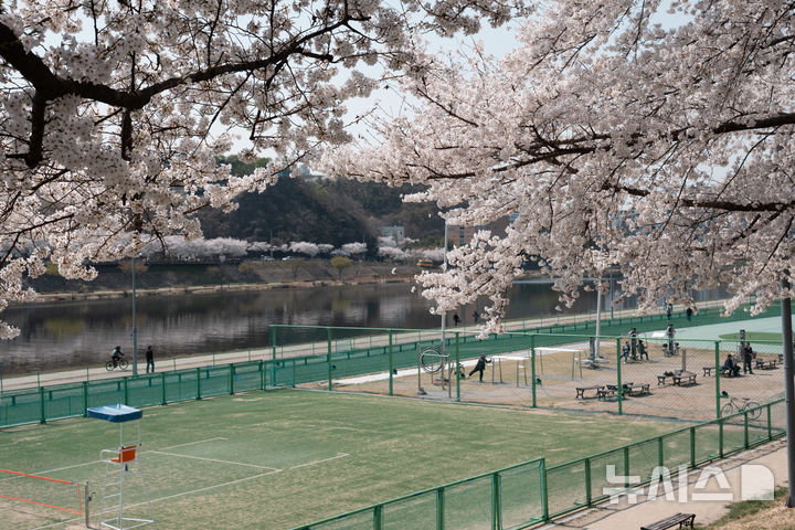 [대구=뉴시스] 김정화 기자 = 따뜻한 봄 날씨를 보인 2일 대구시 동구 지저동 금호강 둔치에 벚꽃이 활짝 피어 있다. 2025.04.02. [email protected]