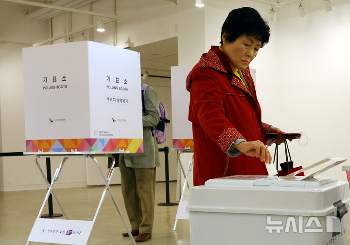 [서울=뉴시스] 박주성 기자 = 4·2 재보궐 선거가 실시된 2일 구로구청장 보궐선거 투표소인 서울 구로제5동 제3투표소에서 한 유권자가 투표하고 있다. 2025.04.02. [email protected]