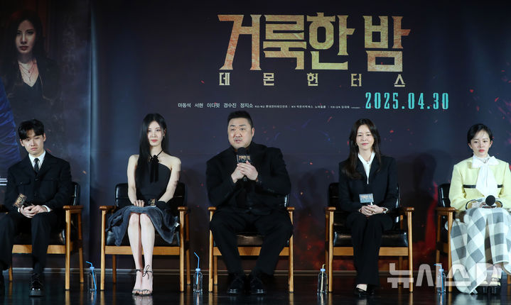 '거룩한 밤: 데몬 헌터스'는 악을 숭배하는 집단에 의해 혼란에 빠진 도시, 특별한 능력을 가진 어둠의 해결사 '거룩한 밤' 팀 바우(마동석), 샤론(서현), 김군(이다윗)이 악의 무리를 처단하는 오컬트 액션 영화다. 오는 30일 개봉. 2025.04.02. [email protected]