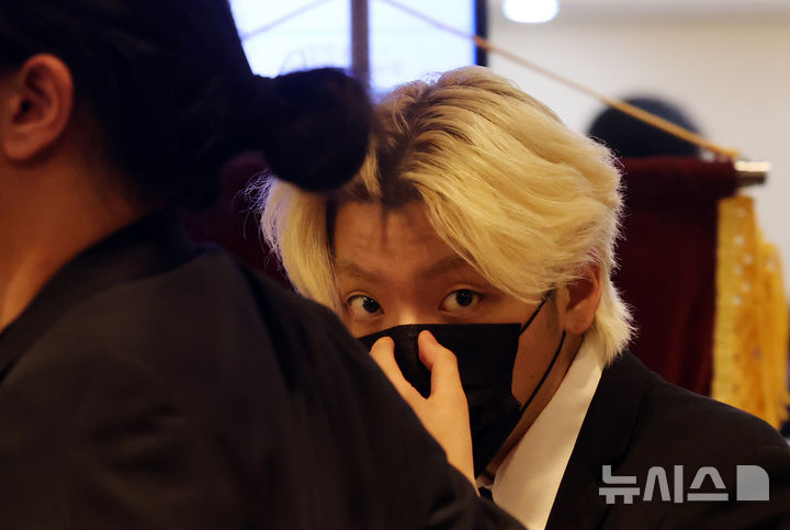 [부산=뉴시스] 하경민 기자 = 2일 부산 해운대구 해운대백병원 장례식장에 마련된 고(故) 장제원 전 국회의원의 빈소에서 고인의 아들 장용준(노엘)이 이동하고 있다. 2025.04.02. [email protected]