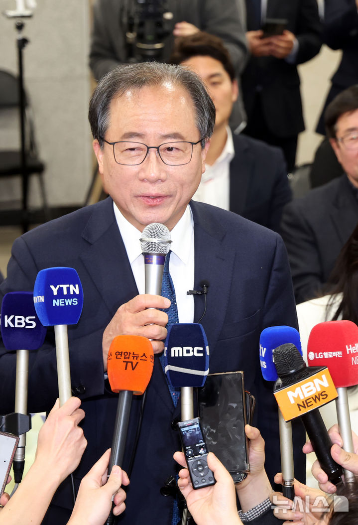 [부산=뉴시스] 하경민 기자 = 부산교육감 재선거 투표일인 2일 부산 부산진구 김석준 후보 선거사무소에서 김 후보가 당선이 유력해지자 소감을 밝히고 있다. 2025.04.02. [email protected]
