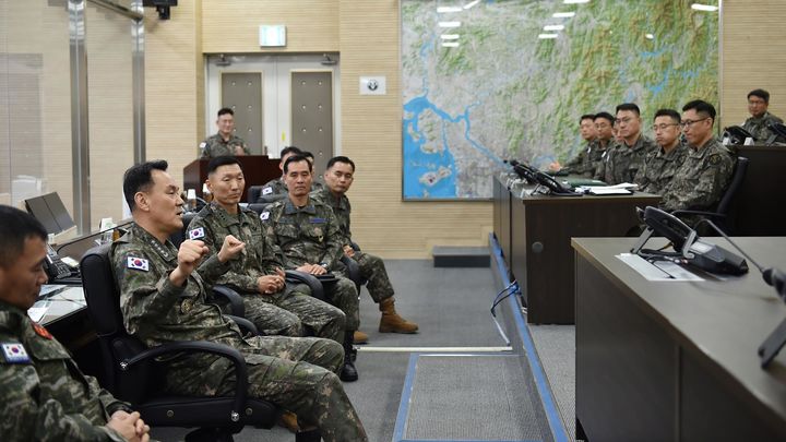 군사대비태세 관련 지휘지침 하달하는 김명수 합참의장