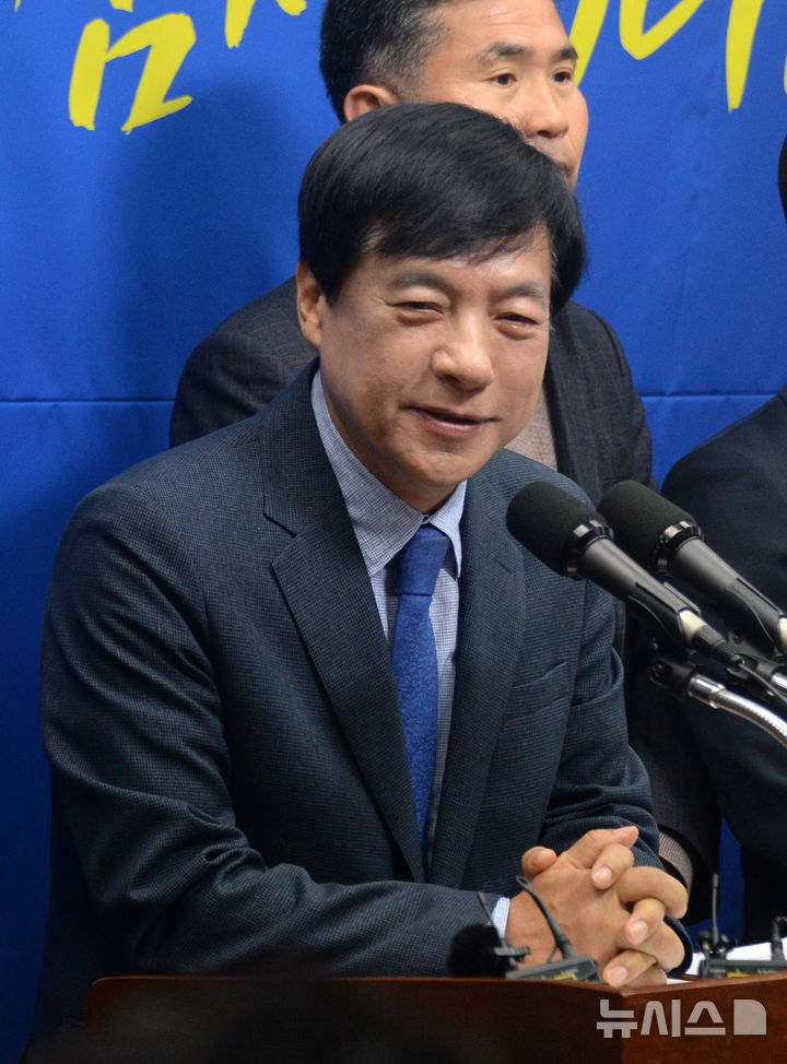 [전주=뉴시스] 김얼 기자 = 이성윤 국회의원이 7일 전북 전주시 전북특별자치도의회 기자회견장에서 열린 윤석열 파면과 관련한 합동 기자회견에 참석해 기자들의 질의에 답변하고 있다. 2025.04.07. [email protected]