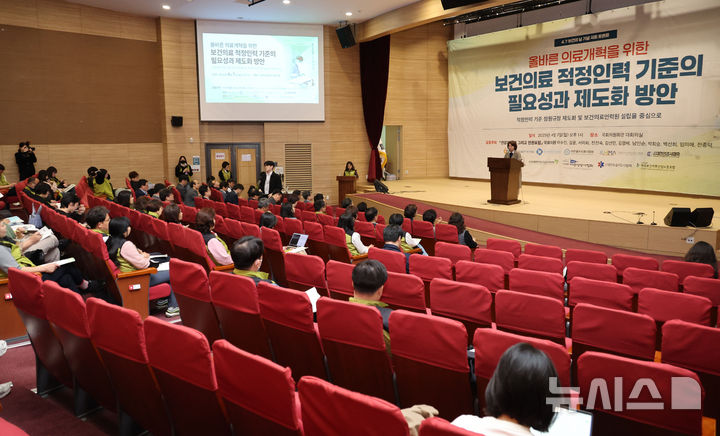 [서울=뉴시스] 권창회 기자 = 이수진 더불어민주당 의원이 7일 오후 서울 여의도 국회 의원회관에서 열린 4.7 보건의날 기념 국회 토론회에서 인사말을 하고 있다. 2025.04.07. [email protected]