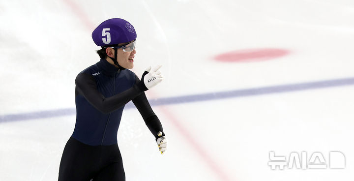 [서울=뉴시스] 김금보 기자 = 7일 서울 양천구 목동아이스링크에서 열린 2025/26시즌 쇼트트랙 국가대표 1차 선발대회 남자 1500m 결승, 임종언(보, 노원고)이 1위로 결승선을 통과한 뒤 기뻐하고 있다. 2025.04.07. [email protected]