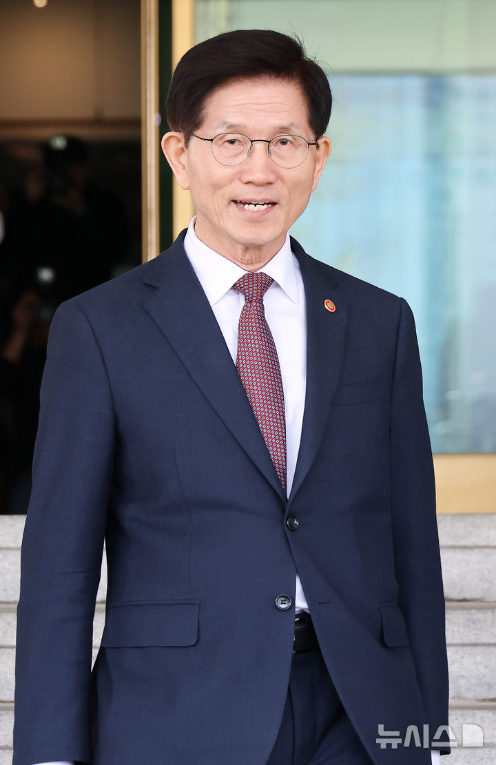 [서울=뉴시스] 김명원 기자 = 김문수 고용노동부 장관이 8일 서울 종로구 정부서울청사에서 국무회의를 마친 후 청사를 나서고 있다. 김문수 장관은 이날 열린 국무회의에서 사의를 표명했다. (공동취재) 2025.04.08. [email protected]