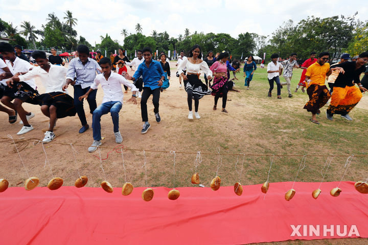 [콜롬보=신화/뉴시스] 8일(현지 시간) 스리랑카 콜롬보에서 주민들이 다가오는 싱할라족·타밀족 새해를 맞아 전통놀이를 즐기고 있다. 올해 스리랑카 새해는 4월 14일로, 이를 기념해 전국 곳곳에서 전통놀이 행사가 열리고 있다. 2025.04.09.