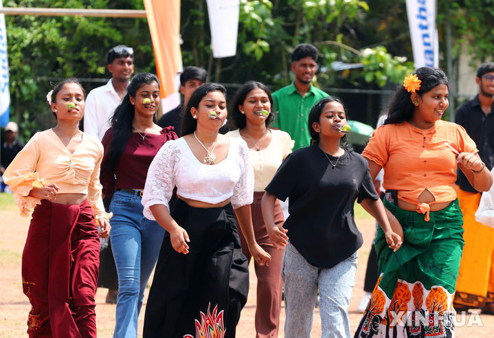 [콜롬보=신화/뉴시스] 8일(현지 시간) 스리랑카 콜롬보에서 주민들이 다가오는 싱할라족·타밀족 새해를 맞아 과일 얹은 숟가락을 입에 물고 달리기를 하고 있다. 올해 스리랑카 새해는 4월 14일로, 이를 기념해 전국 곳곳에서 전통놀이 행사가 열리고 있다. 2025.04.09.