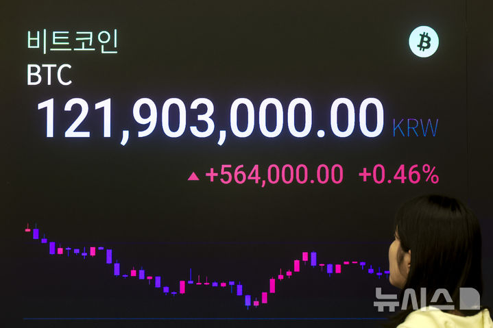 [서울=뉴시스] 정병혁 기자 = 10일 서울 강남구 업비트 고객센터 전광판에 비트코인 시세가 표시되고 있다.