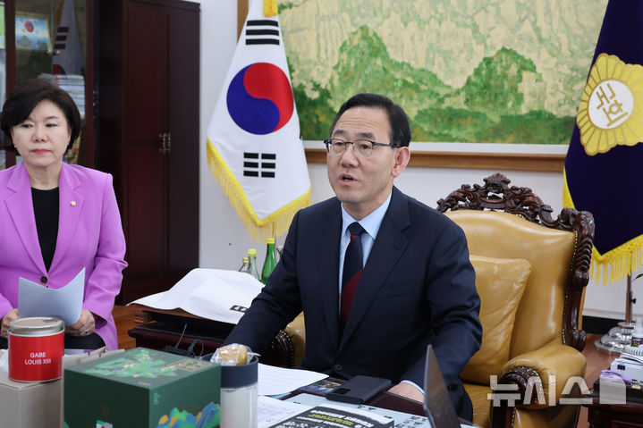 [서울=뉴시스] 조성우 기자 = 주호영 국민의힘 헌법개정특별위원회 위원장이 10일 오후 서울 여의도 국회에서 개헌 관련 기자간담회를 하고 있다. 2025.04.10. [email protected]