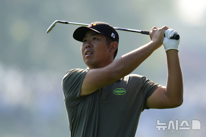 [오거스타=AP/뉴시스] 안병훈이 10일(현지 시간) 미 조지아주 오거스타 내셔널 골프클럽에서 열린 제89회 마스터스 토너먼트 첫날 1번 홀 페어웨이에서 샷하고 있다. 안병훈은 2오버파 74타 공동 51위를 기록했다. 2025.04.11.
