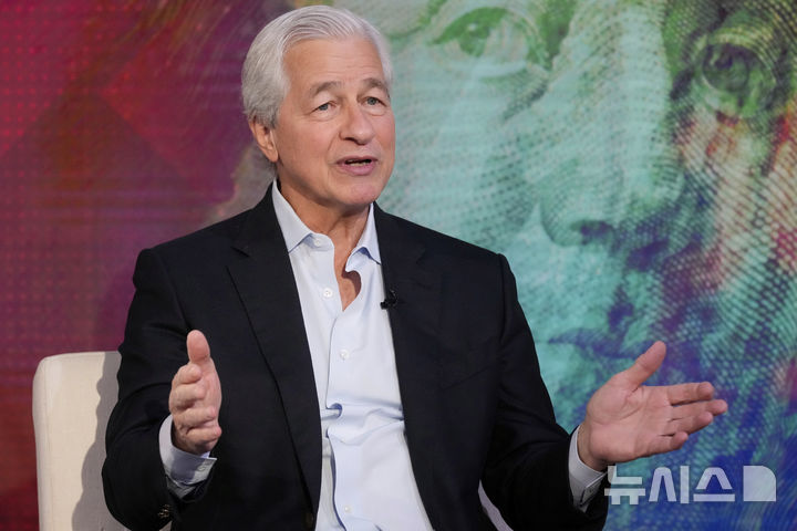 [뉴욕=AP/뉴시스]제이미 다이먼 JP 모건 최고경영자(CEO)가 9일 뉴욕에서 폭스 비즈니스 네트워크와 인터뷰하고 있다. 그는 11일 JP 모건의 1분기 순이익이 146억 달러(20조8926억원)로 9% 증가해 월가의 목표를 앞질렀음에도 불구, 도널드 트럼프 대통령의 지속적인 무역전쟁과 기타 지정학적 긴장으로 인한 세계 경제 불확실성에 대해 경고했다. 2025.04.11.