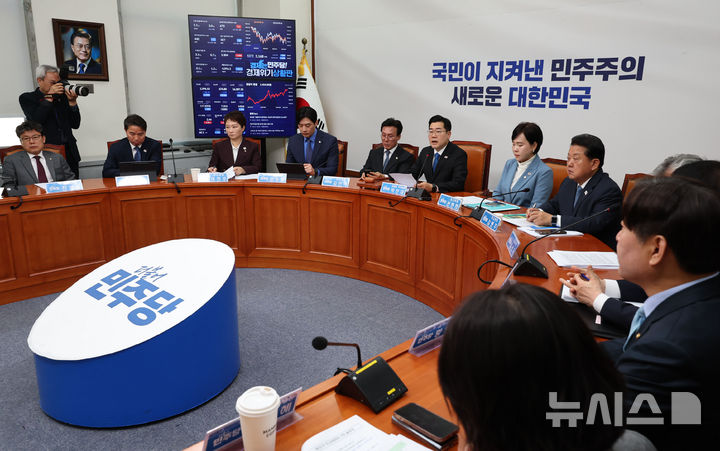 [서울=뉴시스] 권창회 기자 = 박찬대 더불어민주당 당대표 직무대행 겸 원내대표가 11일 오전 서울 여의도 국회에서 열린 최고위원회의에서 발언하고 있다. 2025.04.11. [email protected]