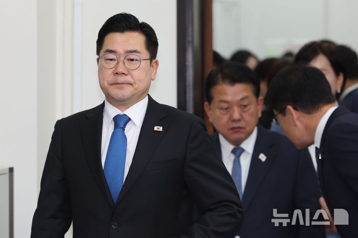 [서울=뉴시스] 권창회 기자 = 박찬대 더불어민주당 당대표 직무대행 겸 원내대표가 11일 오전 서울 여의도 국회에서 열린 최고위원회의에 참석하고 있다. 2025.04.11. [email protected]