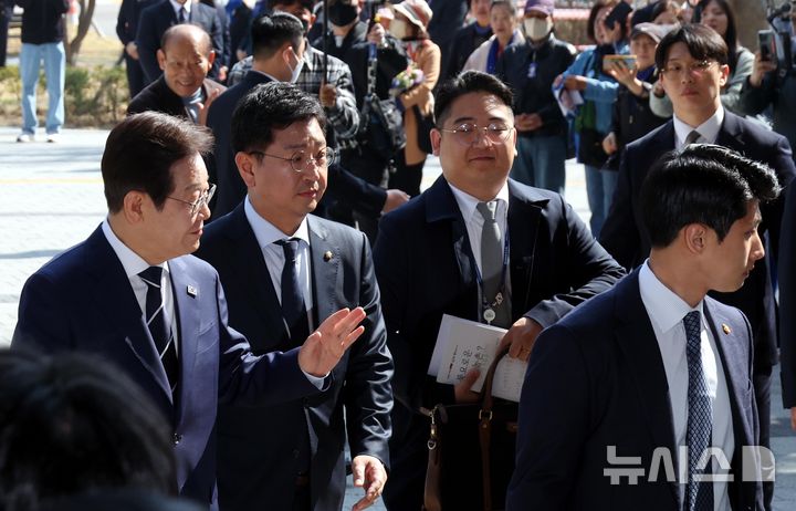 [서울=뉴시스] 조성봉 기자 = 대선출마를 선언한 이재명 더불어민주당 전 대표가 11일 오전 서울 여의도 국회 소통관에서 열리는 예비후보 비전 및 캠프 인선 발표 기자회견에 참석하며 지지자에게 인사하고 있다. [email protected]