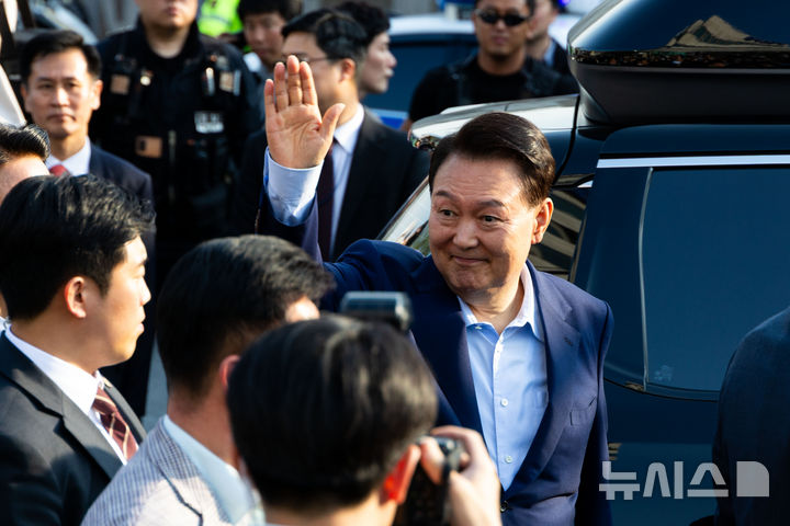 [서울=뉴시스] 황준선 기자 = 윤석열 전 대통령이 11일 서울 용산구 한남동 대통령 관저를 떠나 서초동 사저로 이동하며 지지자들과 인사를 나누고 있다. (공동취재) 2025.04.11. [email protected]