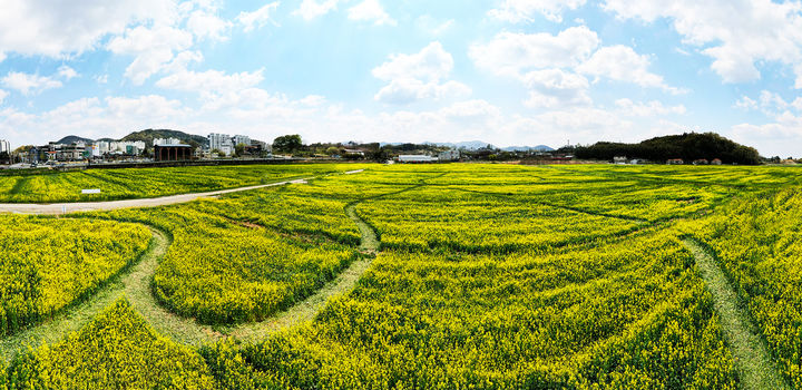 [담양=뉴시스] 송창헌 기자 = 16일 전남 담양 대나무박물관 주변 유채꽃 경관단지에 봄의 시작을 알리는 노란 유채꽃이 만개해 찾는 이들에게 추억을 선사하고 있다. (사진=담양군 제공) 2025.04.16 [email protected]