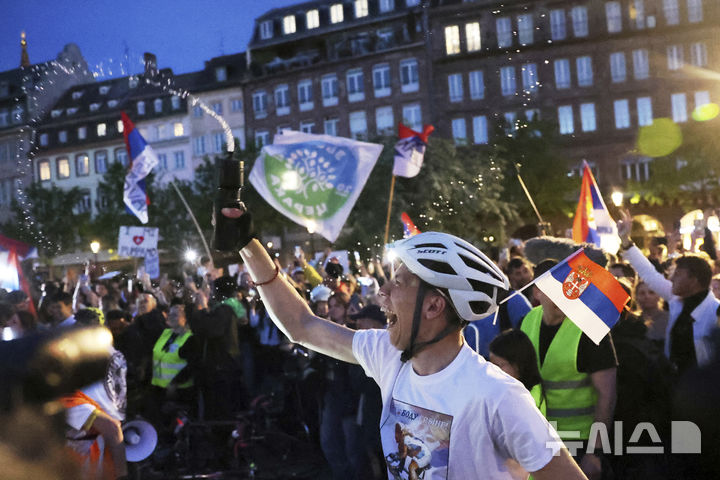 [스트라스부르=AP/뉴시스] 15일(현지 시간) 세르비아 노비사드에서 자전거를 타고 유럽의회(EC) 본부가 있는 프랑스 스트라스부르에 도착한 세르비아 대학생 시위대가 세르비아 교민, 프랑스 학생 및 지지자들의 환영을 받고 있다. 자전거를 타고 13일 전 세르비아를 출발한 약 80명의 대학생은 지난 몇 달간 이어진 세르비아 반부패 시위에 대해 유럽연합의 관심을 끌기 위해 1300㎞에 달하는 여정을 시작한 것으로 전해졌다. 2025.04.16.