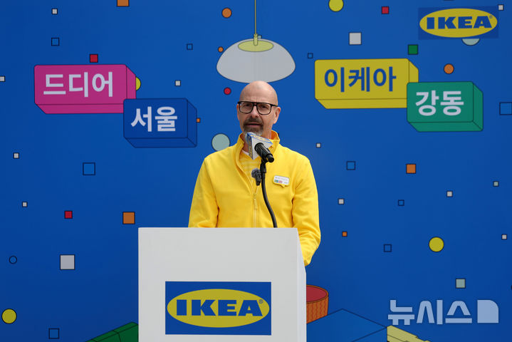 [서울=뉴시스] 홍효식 기자 = 17일 서울 이케아 강동점에서 열린 오픈식에서 매그너스 노르베리 이케아 강동점 점장이 인사말을 하고 있다. 2025.04.17. [email protected]