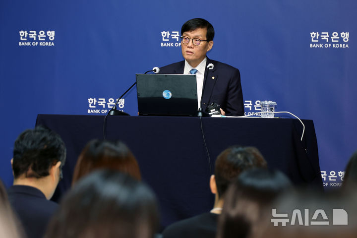 [서울=뉴시스] 사진공동취재단 = 이창용 한국은행 총재가 17일 서울 중구 한국은행 본관에서 열린 통화정책방향 기자 간담회에서 취재진의 질문에 답하고 있다. 2025.04.17. [email protected]