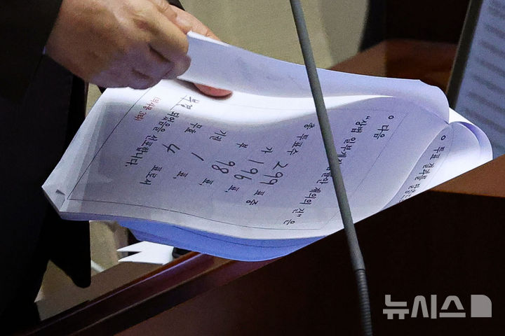 [서울=뉴시스] 권창회 기자 = 17일 서울 여의도 국회에서 열린 제424회 국회(임시회) 제5차 본회의에서 상법 일부개정법률안 재의의 건이 부결되고 있다. 2025.04.17. [email protected]