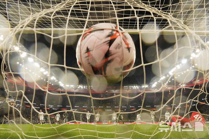 [프랑크푸르트=AP/뉴시스] 토트넘 홋스퍼(영국)의 도미닉 솔란케가 17일(현지 시간) 독일 프랑크푸르트의 도이체방크 파크에서 열린 2024-25 유럽축구연맹(UEFA) 유로파리그(UEL) 8강 2차전 아인라흐트 프랑크푸르트와 경기 전반 43분 페널티킥으로 선제 결승 골을 넣고 있다. 손흥민이 부상으로 빠진 토트넘이 1-0으로 승리해 1,2차전 합계 2-1로 UEL 4강에 진출했다. 2025.04.18.