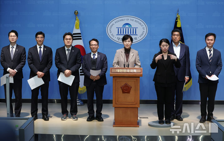 [서울=뉴시스] 고승민 기자 = 전현희 더불어민주당 정치테러대책위원장과 위원들이 18일 서울 여의도 국회 소통관에서 야당 대선후보들에 대한 테러 예비·음모 우려 및 신변보호 강화를 촉구하는 기자회견을 하고 있다. 2025.04.18. [email protected]