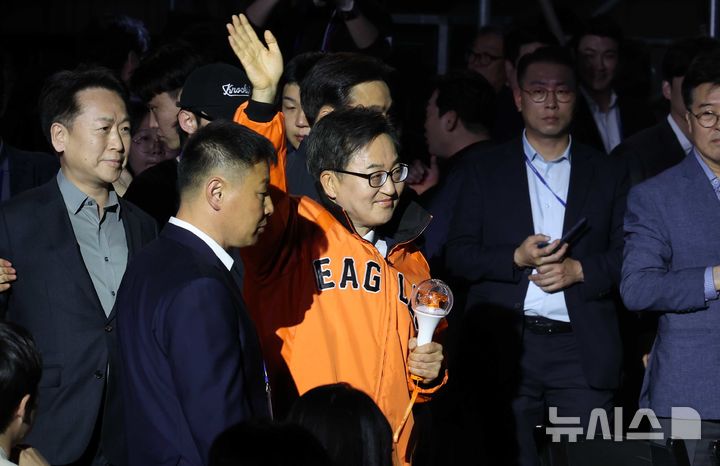 한화이글스 유니폼 입고 입장하는 김동연 후보