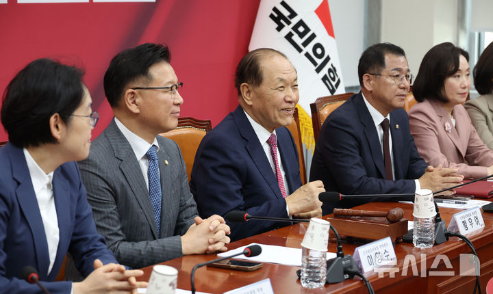 [서울=뉴시스] 조성봉 기자= 황우여 국민의힘 선거관리위원장이 21일 오전 서울 여의도 국회에서 열린 대통령후보자 선출을 위한 경선 선거관리위원회 회의에서 미소를 짓고 있다. 2025.04.21. [email protected]