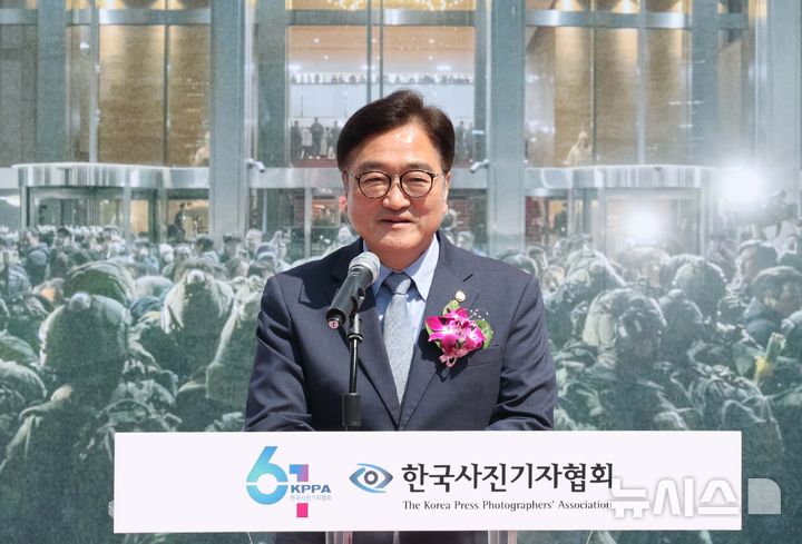 [서울=뉴시스] 사진공동취재단 = 권영세 국민의힘 비상대책위원장이 21일 서울 종로구 광화문 광장에서 열린 제61회 한국보도사진전 '순간의 포착, 진실의 기록' 개막식에서 축사를 하고 있다. 2025.04.21. [email protected]