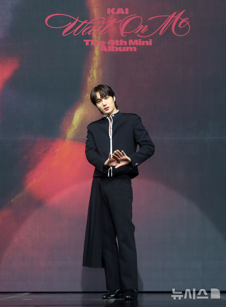[서울=뉴시스] 김혜진 기자 = 그룹 엑소 카이가 21일 오후 서울 광진구 예스24라이브홀에서 열린 네 번째 미니앨범 '웨이트 온 미'(Wait On Me) 발매 기념 쇼케이스에서 포즈를 취하고 있다.