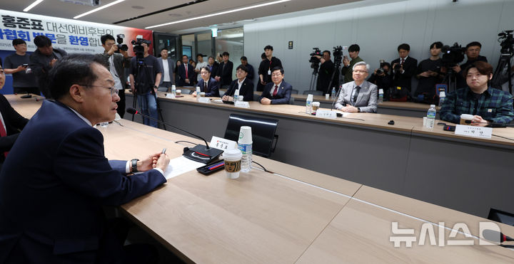 [서울=뉴시스] 이영환 기자 = 홍준표 제21대 대통령 선거 국민의힘 경선 후보가 22일 오후 서울 용산구 대한의사협회 대회의실에서 김택우 대한의사협회 회장 등과 간담회를 하고 있다. 2025.04.22. [email protected]