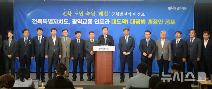 [전주=뉴시스] 김얼 기자 = 김관영 전북특별자치도지사가 22일 전북 전주시 전북특별자치도청 기자회견장에서 열린 대광법 개정 공포 관련 브리핑에 참석해 기자들의 질의에 답변하고 있다. 2025.04.22. [email protected]