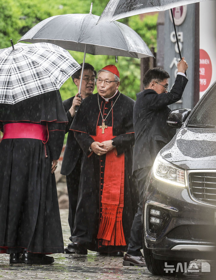 [서울=뉴시스] 정병혁 기자 = 제266대 교황인 프란치스코 교황이 선종한 가운데 22일 서울 중구 명동대성당을 찾은 시민들이 빈소에 조문하기 위해 줄을 서 있다. 2025.04.22. [email protected]