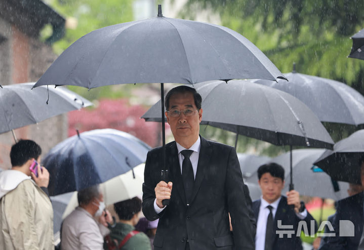 [서울=뉴시스] 최진석 기자 = 한덕수 대통령 권한대행 국무총리가 22일 서울 명동대성당 지하성당에 마련된 프란치스코 교황 빈소 조문을 마친 후 이동하고 있다. (대통령실통신사진기자단) 2025.04.22. [email protected]