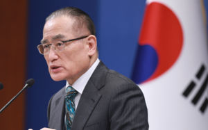 정순택 대주교와 인사하는 한덕수 대통령 권한대행