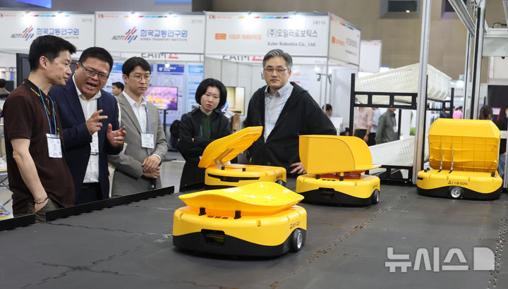 [고양=뉴시스] 전진환 기자 = 22일 경기도 고양시 킨텍스에서 열린 '국제 제약·화장품 위크 2025'(ICPI WEEK 2025)에서 관람객들이 자동 물류 분류 시스템을 살펴보고 있다.