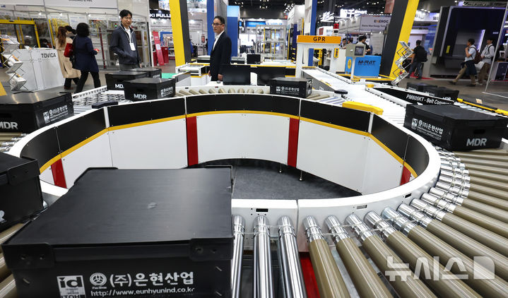 [고양=뉴시스] 전진환 기자 = 22일 경기도 고양시 킨텍스에서 열린  '국제 제약·화장품 위크 2025'(ICPI WEEK 2025)에서 관람객들이 자동 물류 분류 시스템을 살펴보고 있다.
