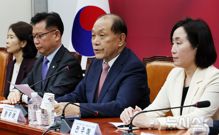 [서울=뉴시스] 조성우 기자 = 황우여(오른쪽 두 번째) 국민의힘 선거관리위원장이 22일 오후 서울 여의도 국회에서 제21대 대통령 선거 후보자 선출 2차 경선 진출자 명단을 발표하고 있다. 2차 경선을 진출한 후보자는 김문수, 안철수, 한동훈, 홍준표 등 4명이다. 2025.04.22. [email protected]