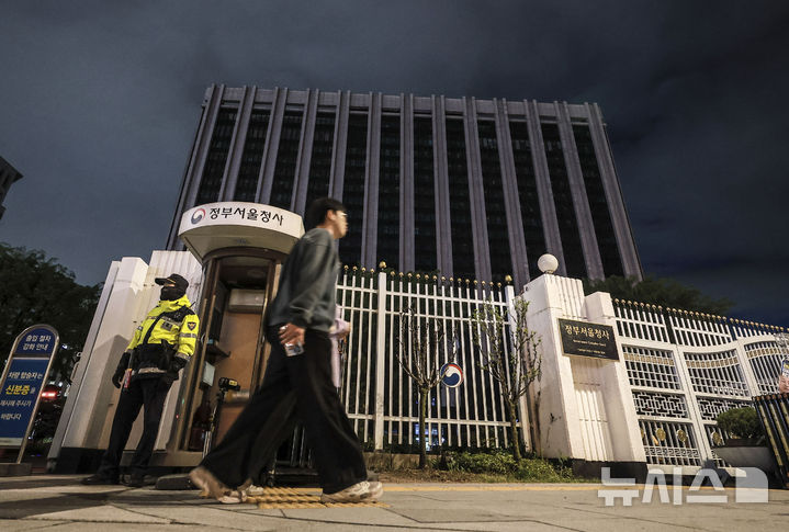[서울=뉴시스] 정병혁 기자 = 지구의날인 22일 서울 종로구 정부서울청사의 불이 꺼져있다. 올해로 55주년을 맞은 지구의날은 오후 8시부터 10분간 서울과 과천, 세종의 정부청사와 부산 광안대교, 송도 센트럴파크, 수원 화성행궁 등 전국 곳곳 주요 랜드마크에서 지구의 소중함을 알리기 위한 동시 소등 행사가 진행됐다. 2025.04.22. [email protected]