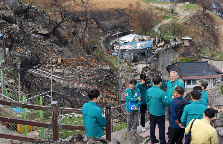 경북 영덕 산불피해 현장 찾은 유인촌 장관