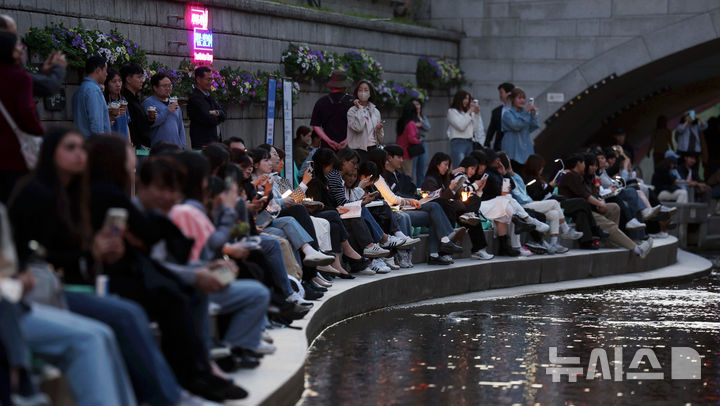 [서울=뉴시스] 홍효식 기자 = '세계 책과 저작권의 날'을 맞아 서울야외도서관 운영을 시작한 23일 오후 서울 중구 청계천에 마련된 '책 읽는 맑은 냇가'에서 시민들이 독서를 즐기고 있다. 2025.04.23. [email protected]